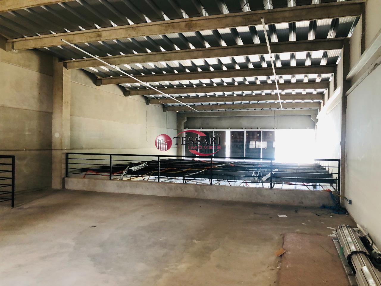 Sala com espaço amplo, pé direito alto e mezanino que permite fácil adaptação para qualquer ramo de negócio.